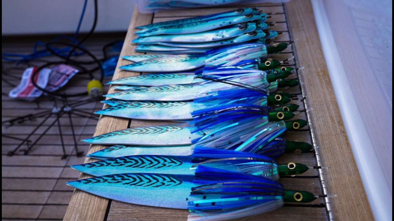 Soft plastic dredge shads that create lifelike bait schools offshore. Proven to raise marlin, sailfish, and tuna, these durable baits are ideal for custom dredge builds and tournament spreads.