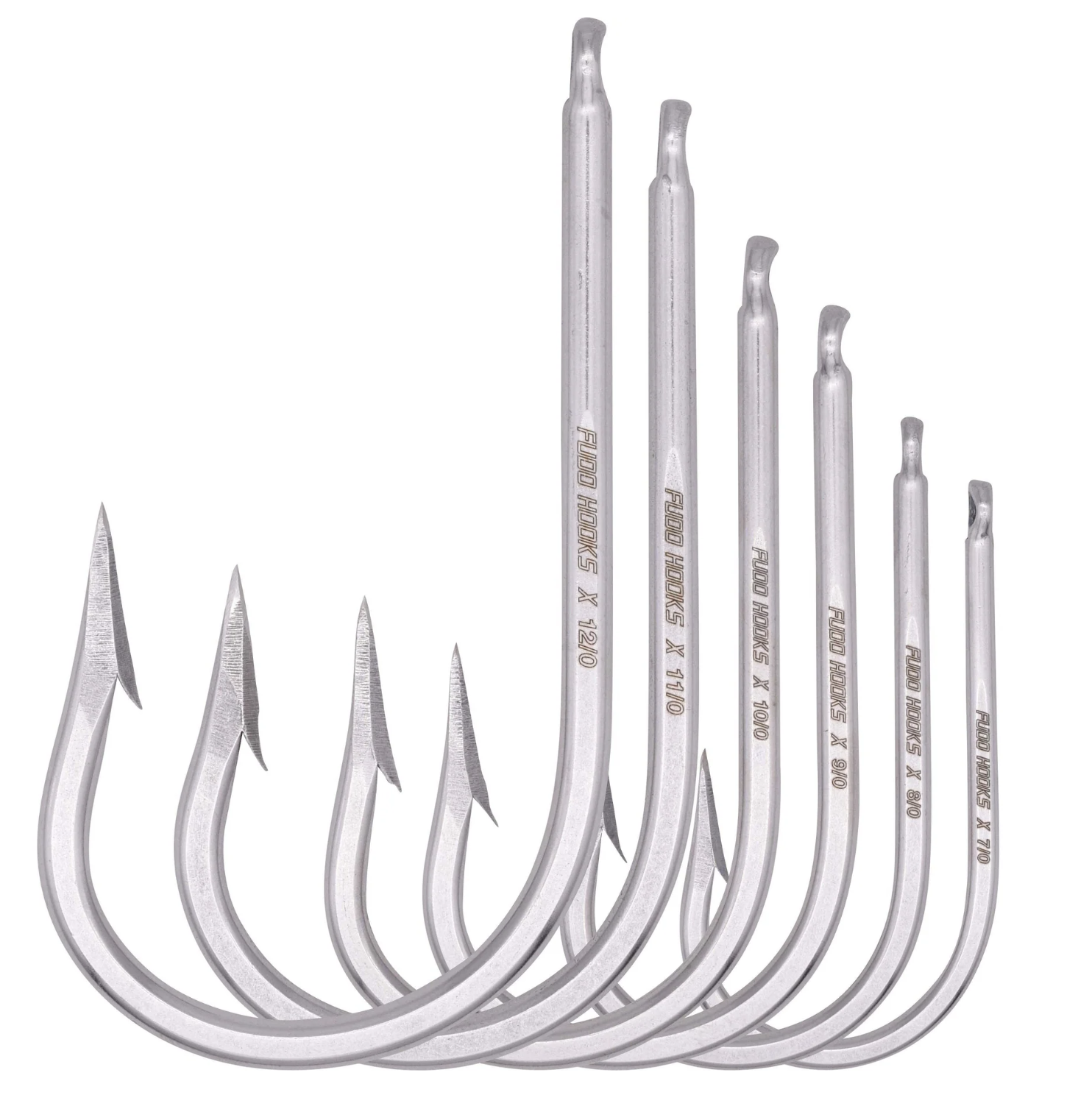 FUDO Super Ocean Tuna Needle Eye Hooks are true “J Hooks” that provide more open throat and grasp than that of the Southern Tuna style. These are versatile hooks that provide great performance when trolling or fishing bait for large gamefish.