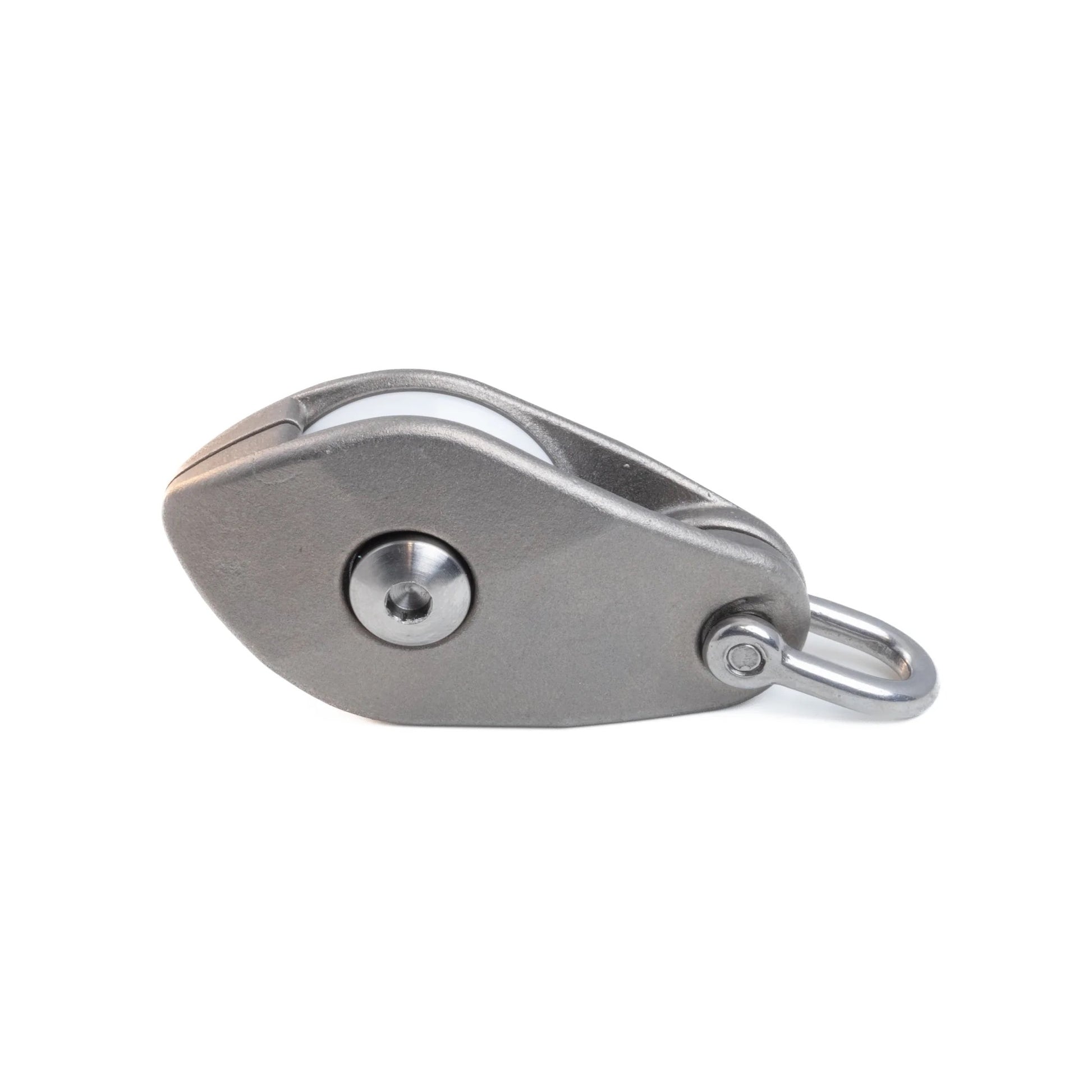Our Titanium dredge pulley is a more compact pulley designed specifically for pulling heavy-duty dredges using a braided line fully submerged. The roller's edge is recessed into the pulley body, so the braid cannot get snagged between it and the pulley body.